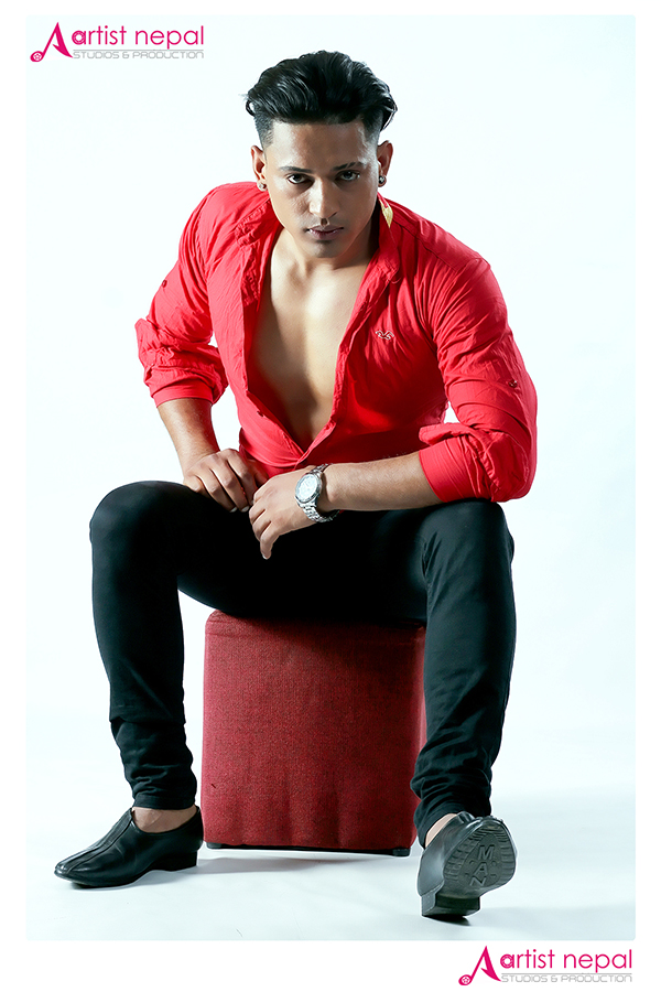 Aditya Karki is the model. Aditya, a resident of Thankot, Kathmandu, has done more than 3 dozen fashion shows.
